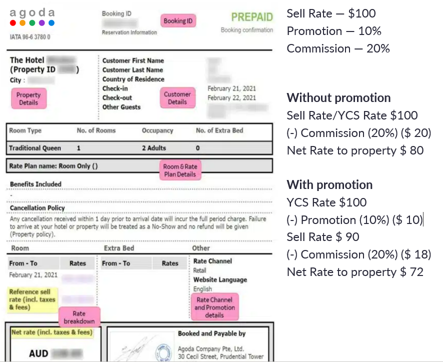 On the below screenshot is the voucher which Agoda sent to the property, you can see if there is any other discount applied (promotion, rate channel, etc) which could led into lower net rate that property should get.