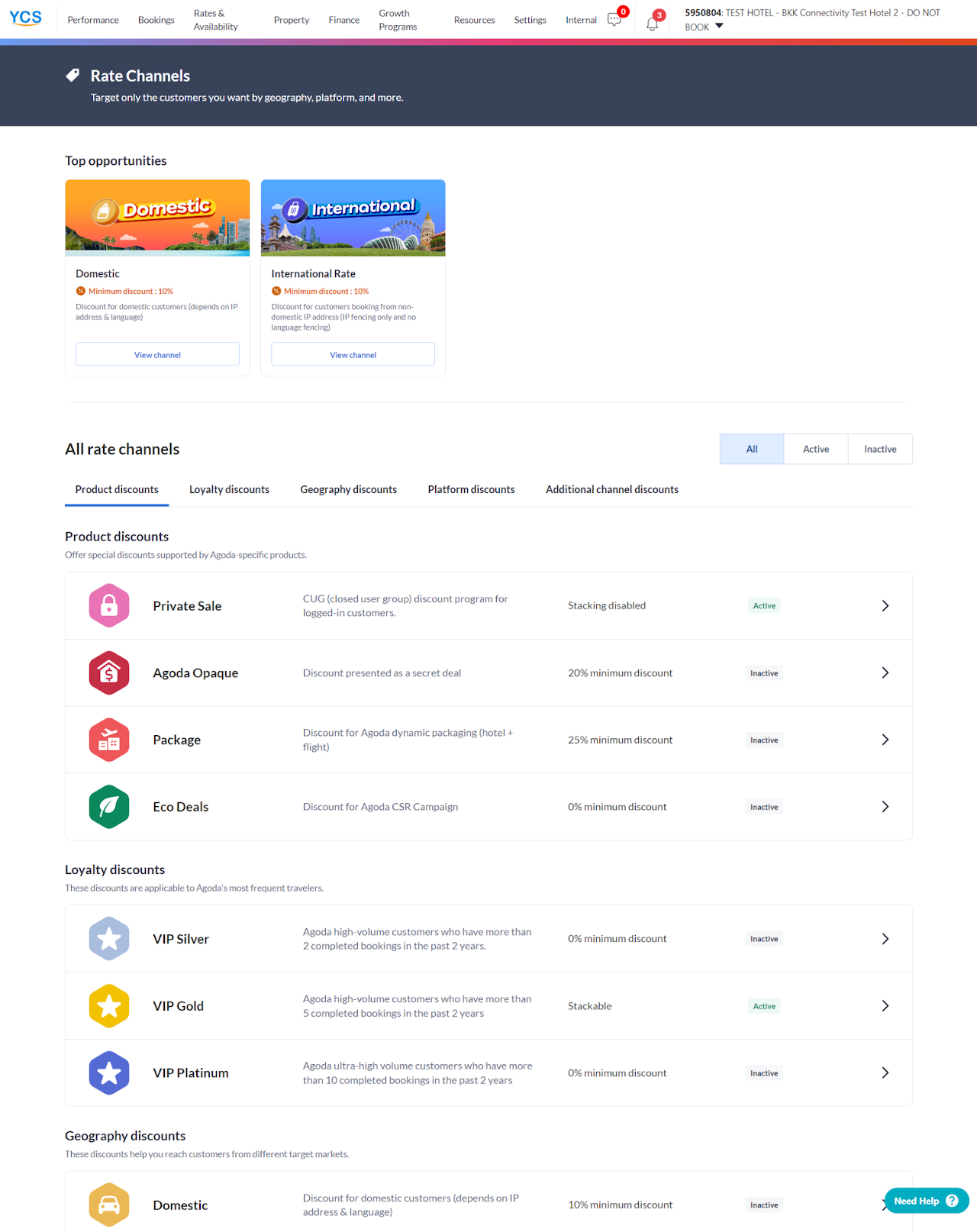 Only certain channels can be self-managed by the property. If certain channels are not available in the page, please contact Accommodation Services Team via YCS Help Widget for further assistance to manage the channels.