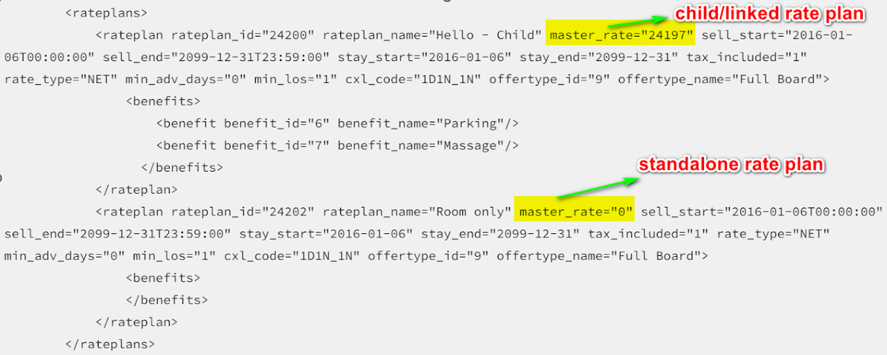 Below is an example of GetProduct response to identify child rate plan and master rate plan.